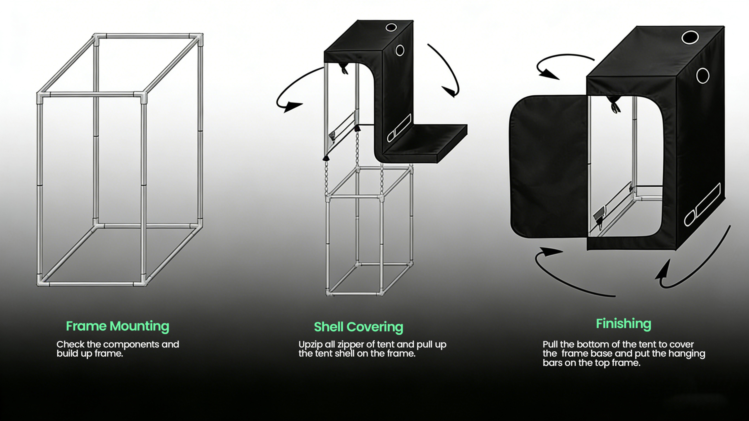 Engineered for family growers and small-scale commercial setups, our 150×150×200cm grow tent delivers unparalleled space and performance. Crafted with heavy-duty 600D Oxford fabric, it’s tear-resistant, water-repellent, and built to withstand the rigors of high-frequency use. The 340G PE lightproof barrier ensures 100% light blockage, locking in precise growth cycles and eliminating external light interference. Inside, 100% reflective diamond mylar maximizes light utilization with uniform reflection, while the robust 16mm diameter steel poles provide rock-solid stability—effortlessly supporting multiple grow lights, fans, carbon filters, and accessories.